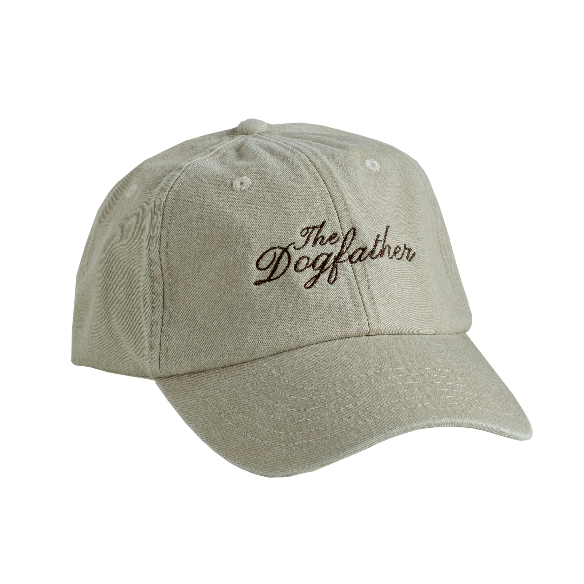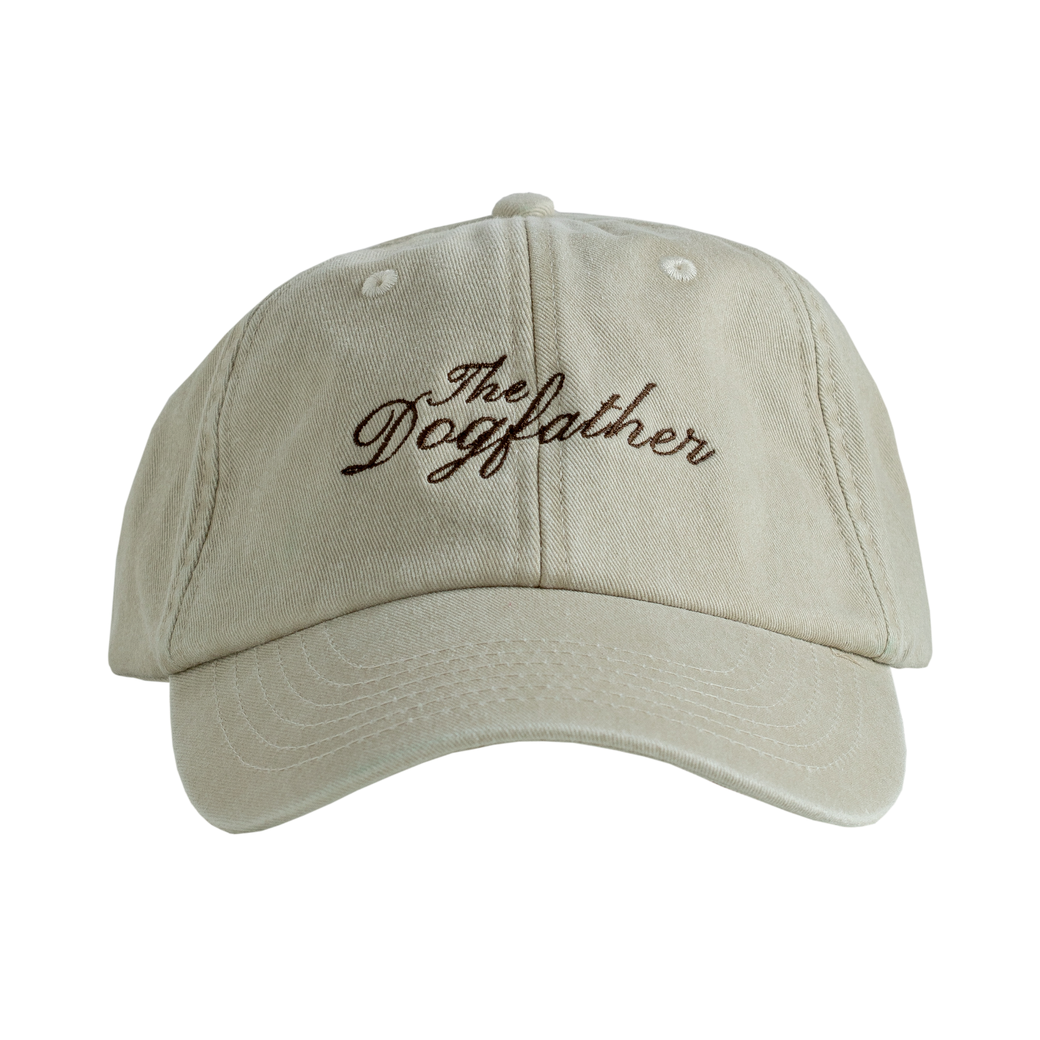 Upgrade your dad style with The Dogfather Cap in Stone. This playful twist on a classic features the text "The Dogfather" for all the dog dads out there.