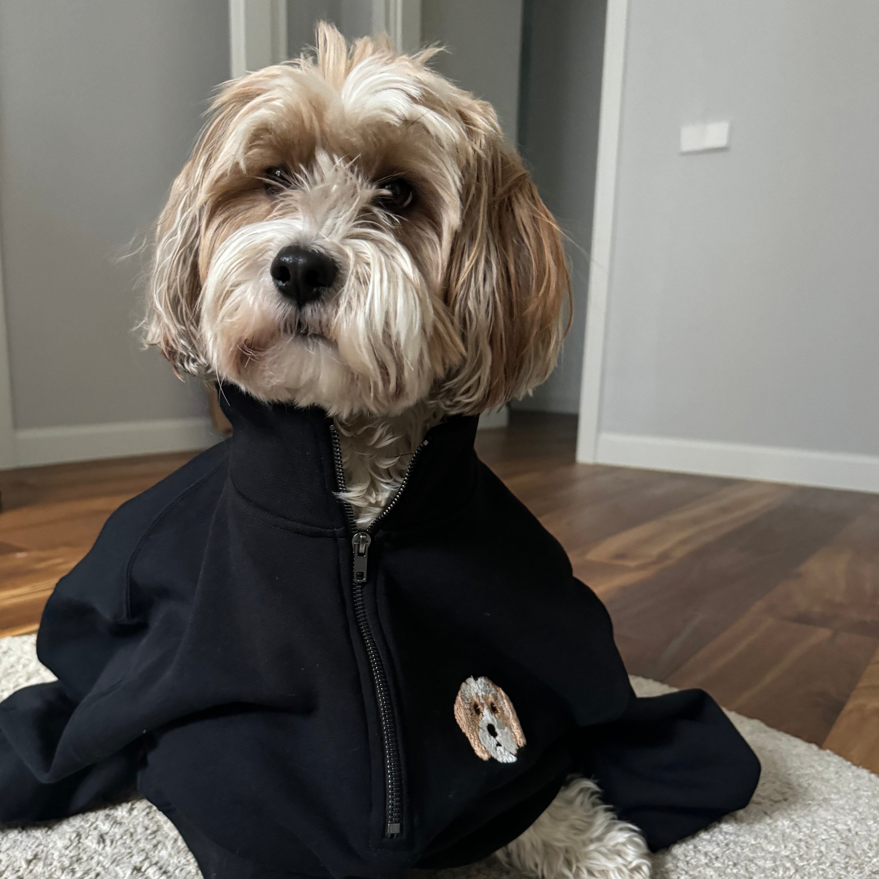 Our studio specializes in custom pet embroidery on sweatshirts and t-shirts, creating one-of-a-kind, wearable art that captures the unique personality of your beloved companion. Every stitch is crafted with care, ensuring that your pet’s likeness is brought to life in the most heartwarming way.