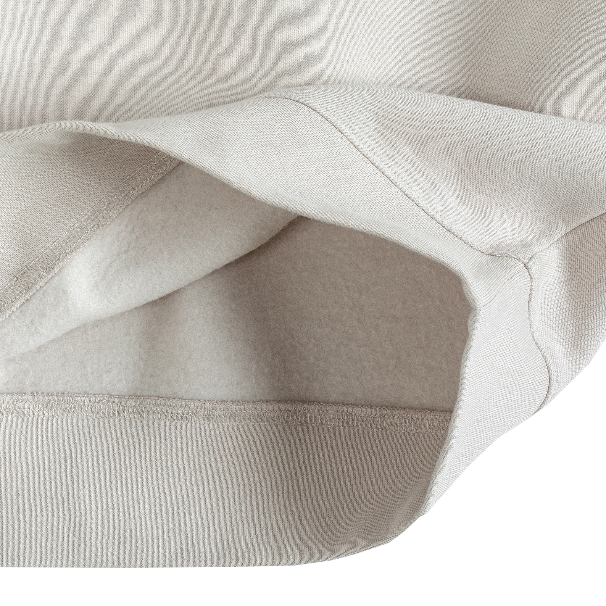 Mid-weight. 80% cotton, 20% recycled polyester fleece.