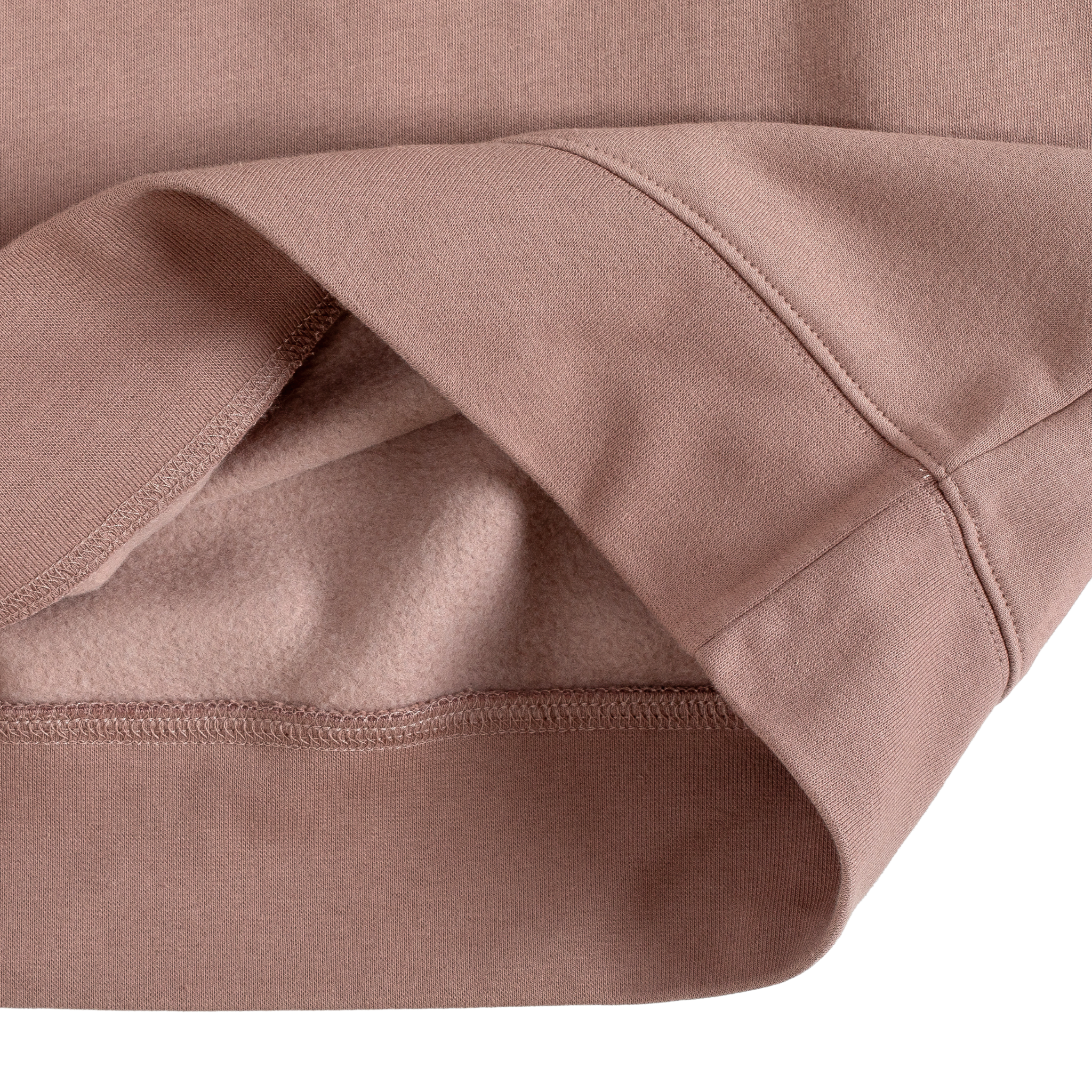 Mid-weight. 80% cotton, 20% recycled polyester fleece.