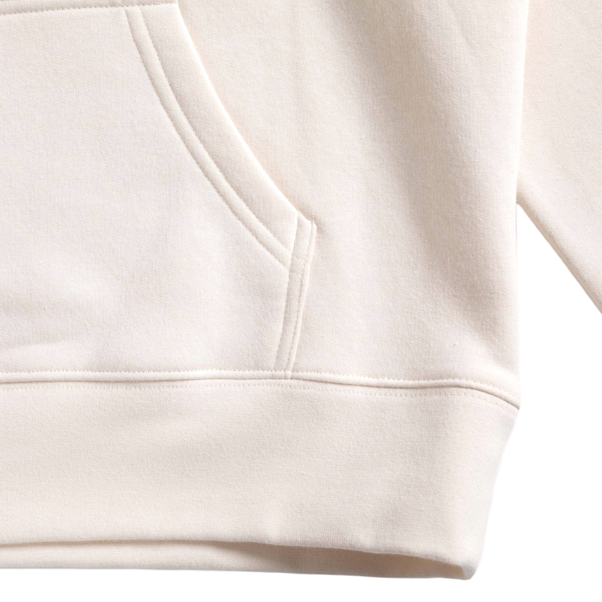 Mid-weight. 80% cotton, 20% recycled polyester fleece.