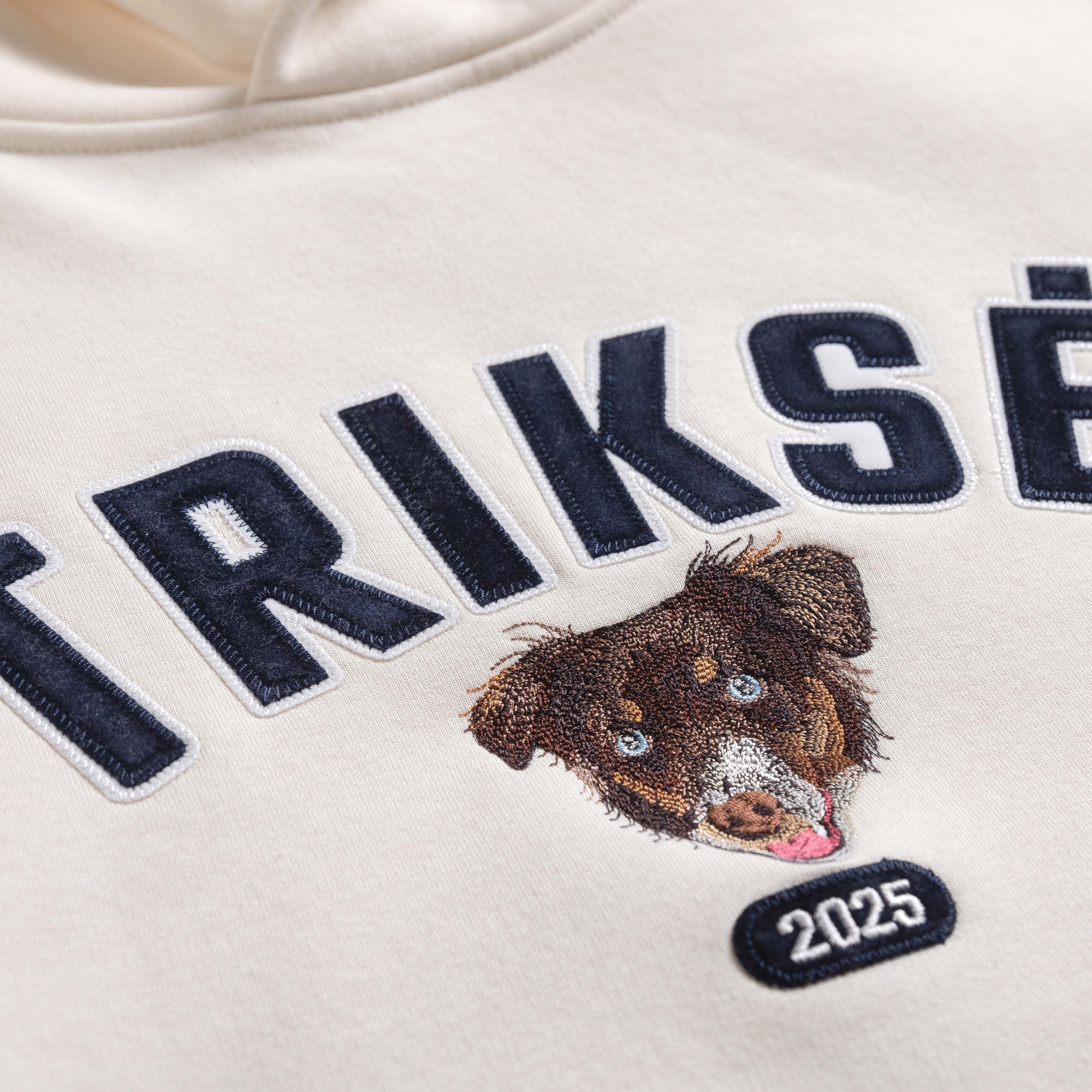 Show off your pet love in style with our Women's Custom Varsity Hoodie. This premium hoodie combines a custom embroidered portrait of your furry friend with a bold collegiate-style name design in flocked lettering, finished with embroidered outlines for a timeless look. Soft, durable, and made to stand out—it's the perfect blend of comfort and personal flair.
